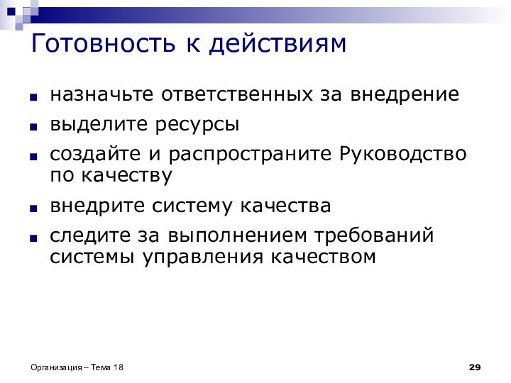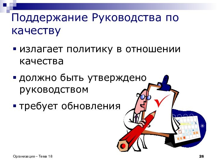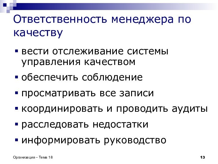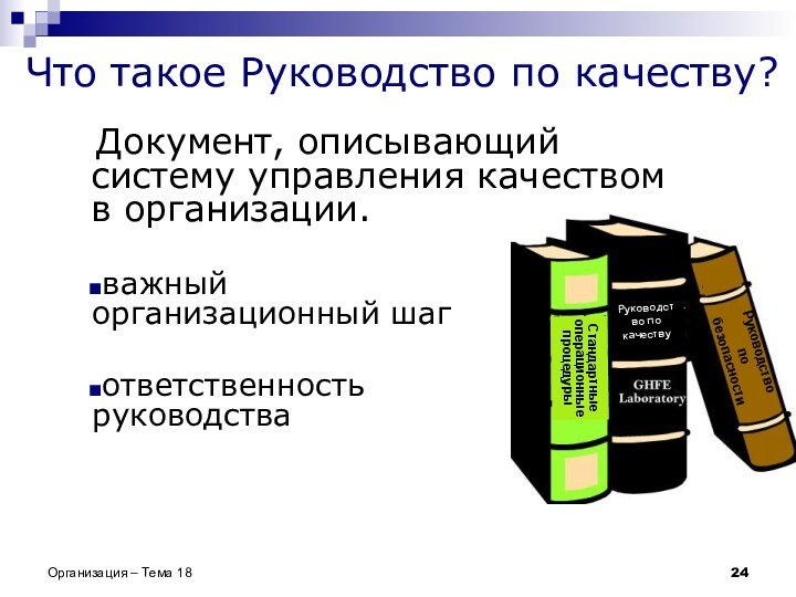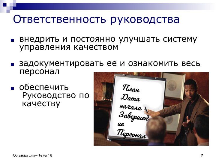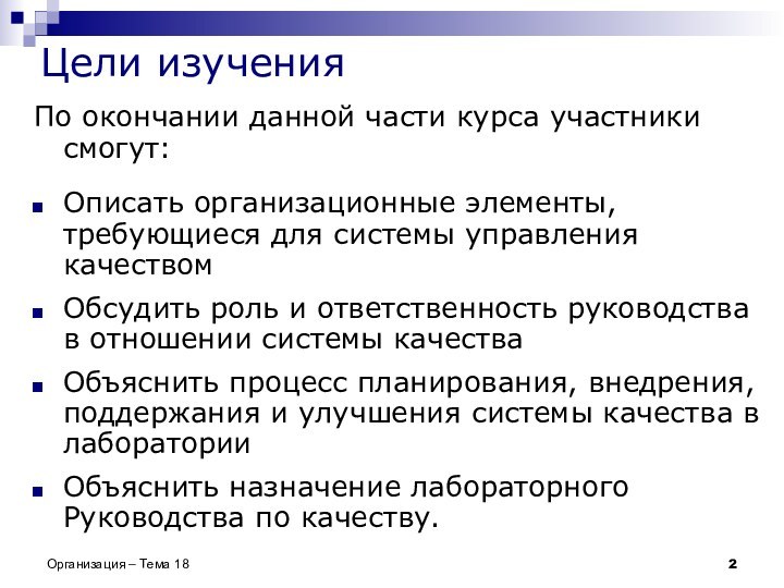 ответственность руководства в отношении системы качестваОбъяснить процесс планирования, внедрения, поддержания и улучшения системы качества в лаборатории