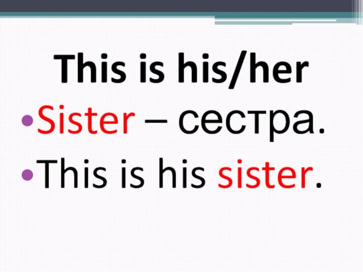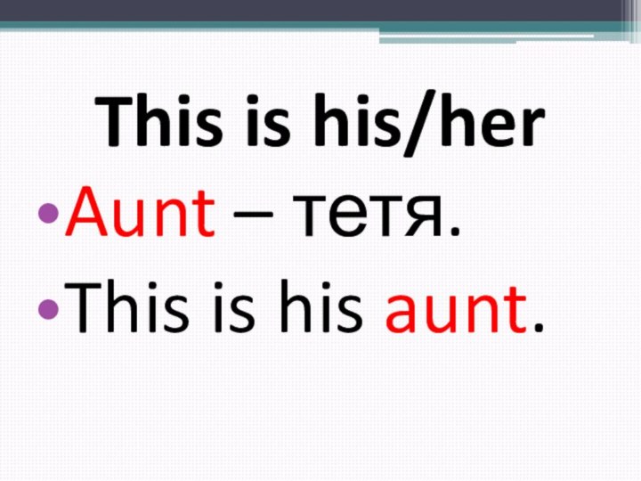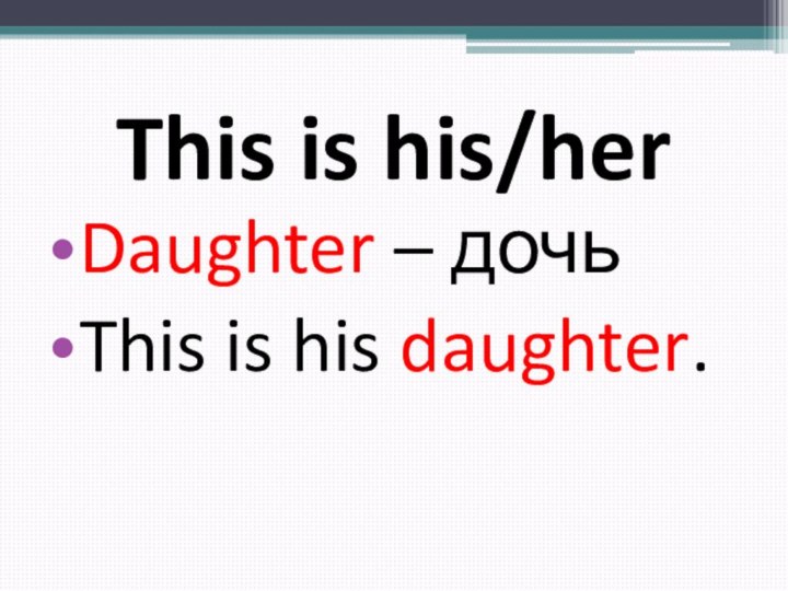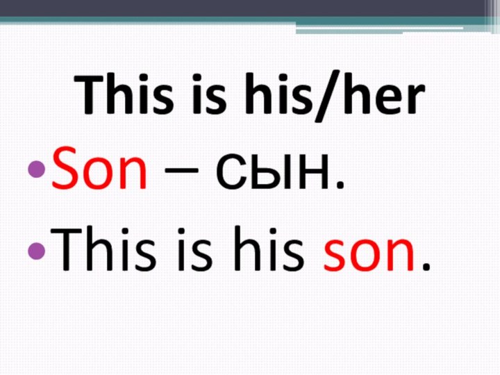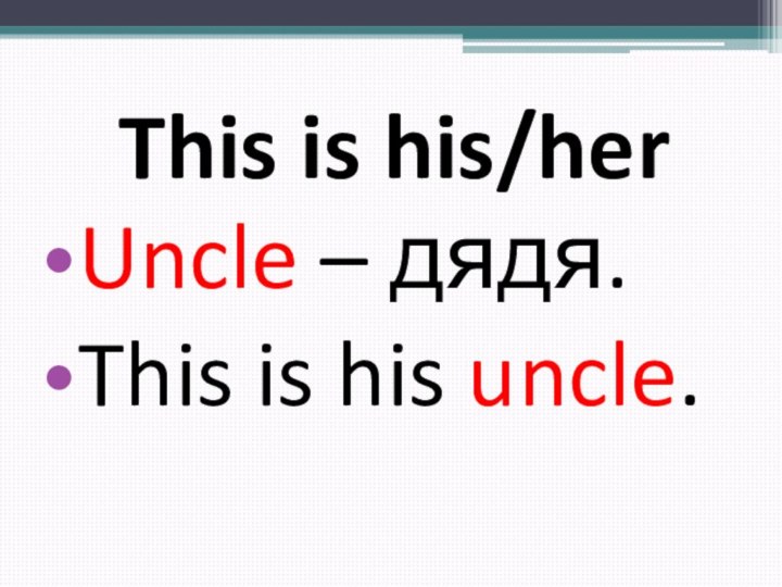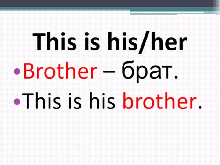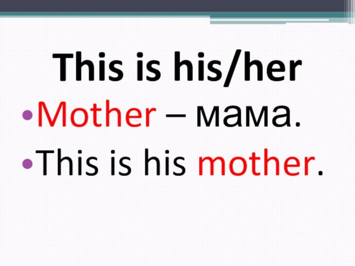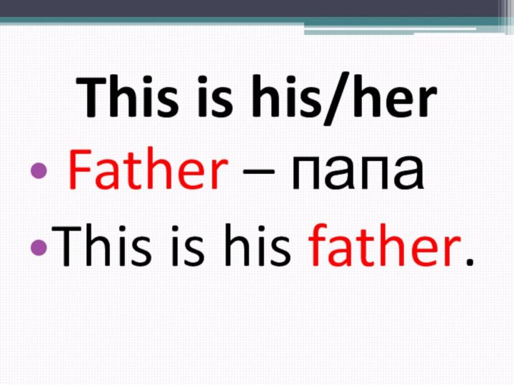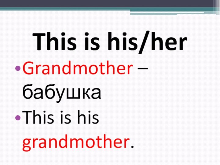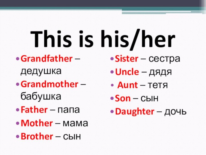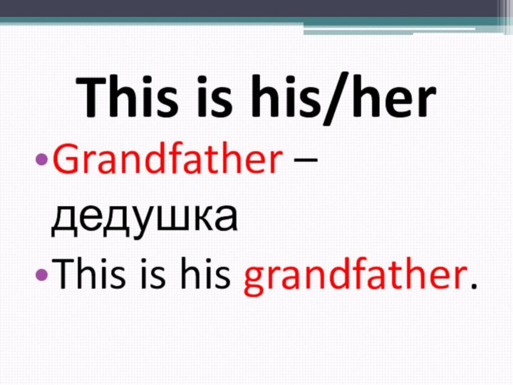 This is his/herGrandfather – дедушкаGrandmother – бабушкаFather – папаMother – мамаBrother