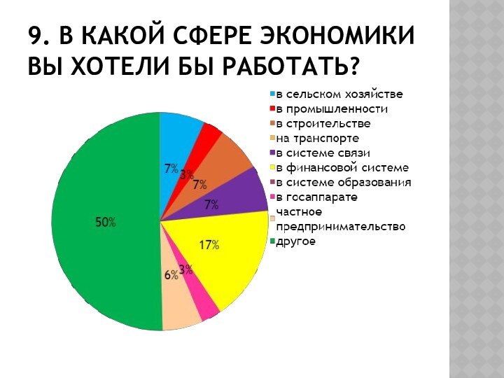 Слайд 10 9. В какой сфере экономики вы хотели бы