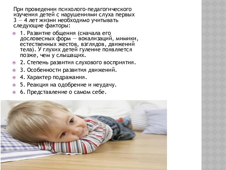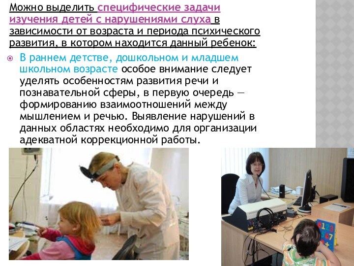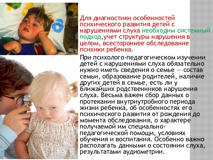 обследования ребенка с нарушением слуха имеет некоторые особенности. В