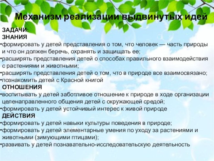 воспитывать у детей заботливое отношение к природе в ходе организации целенаправленного общения детей с окружающей средой;