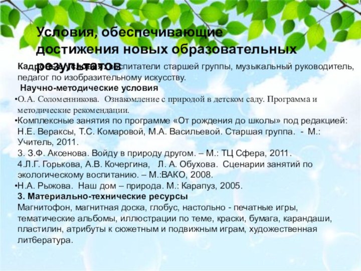 О.А. Соломенникова. Ознакомление с природой в детском саду. Программа и методические рекомендации.