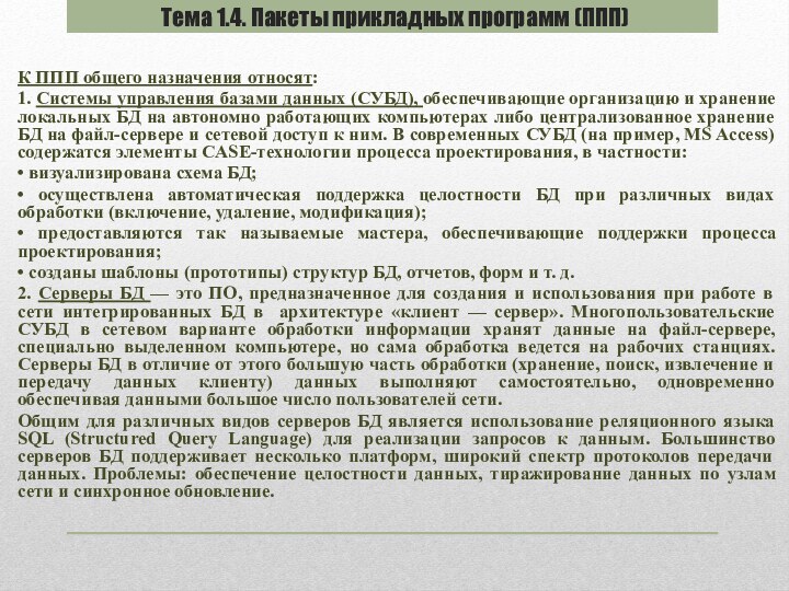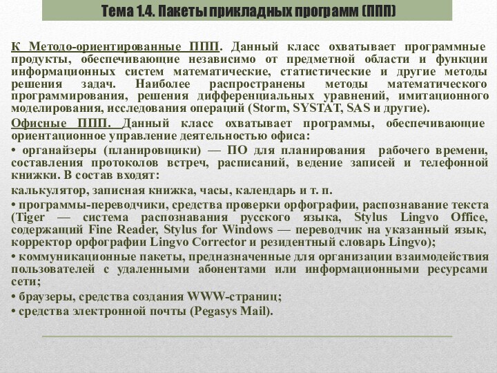 Тема 1.4. Пакеты прикладных программ (ППП)