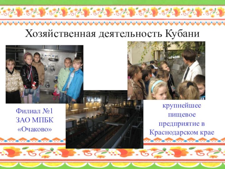 Хозяйственная деятельность КубаниФилиал №1 ЗАО МПБК «Очаково» крупнейшее пищевое предприятие в Краснодарском крае