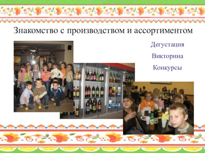 Знакомство с производством и ассортиментомДегустацияВикторинаКонкурсы