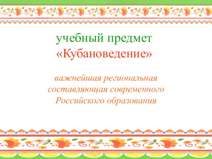 учебный предмет «Кубановедение» важнейшая региональная составляющая современного Российского образования
