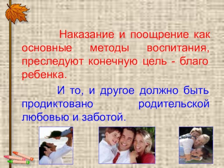 поощрение как основные методы воспитания, преследуют конечную цель -