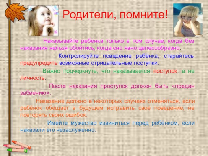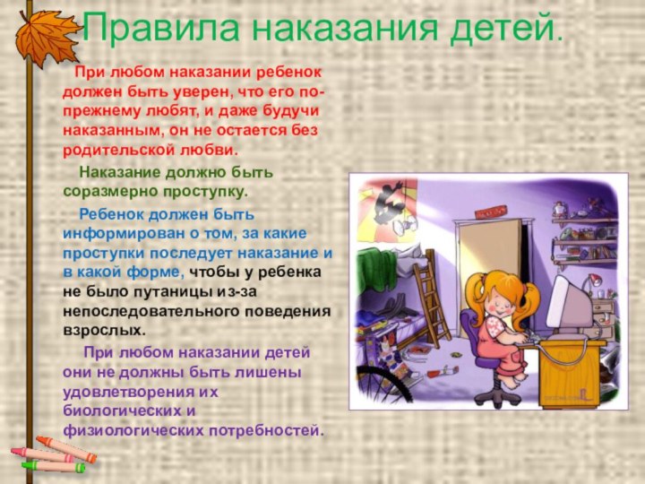 Правила наказания детей.