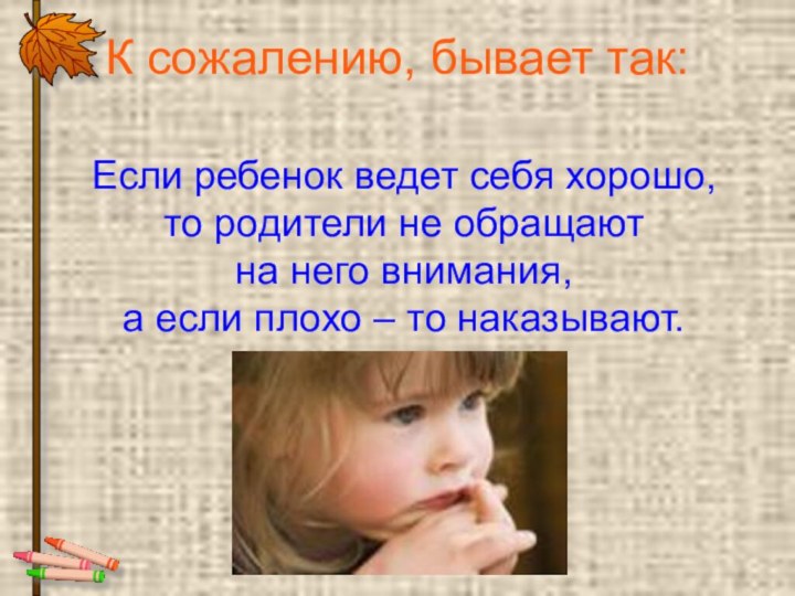 любят, и даже будучи наказанным, он не остается без родительской любви.