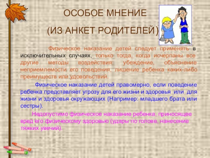 Физическое наказание детей.