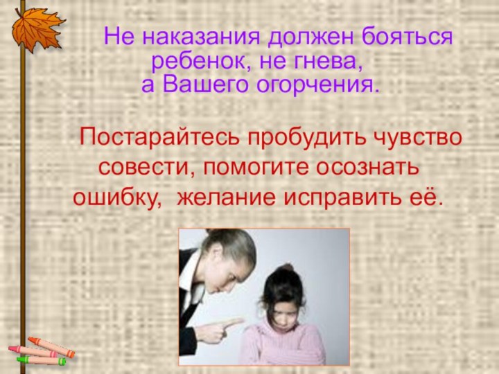 наказания должен бояться ребенок, не гнева,