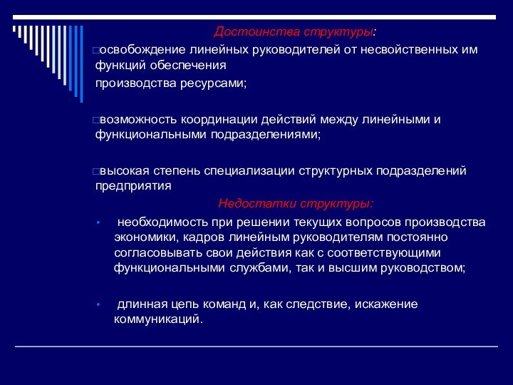 необходимость при решении текущих вопросов производства экономики, кадров линейным руководителям постоянно согласовывать свои действия как с соответствующими функциональными службами, так и высшим руководством;