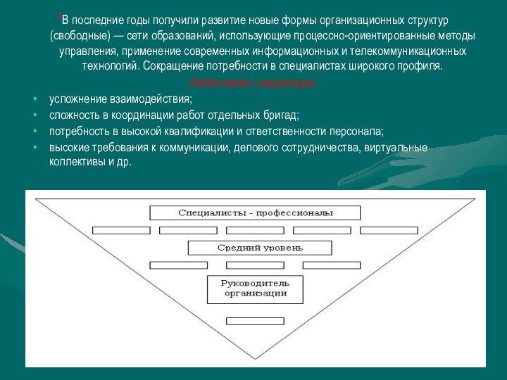 связаны с ростом иерархии — формированием промежуточных управленческих уровней и звеньев, необходимых для координации работы: