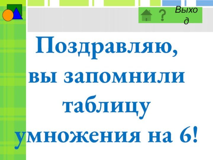 Поздравляю,   вы запомнили таблицу умножения на 6!