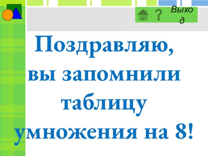 Поздравляю,   вы запомнили таблицу умножения на 8!