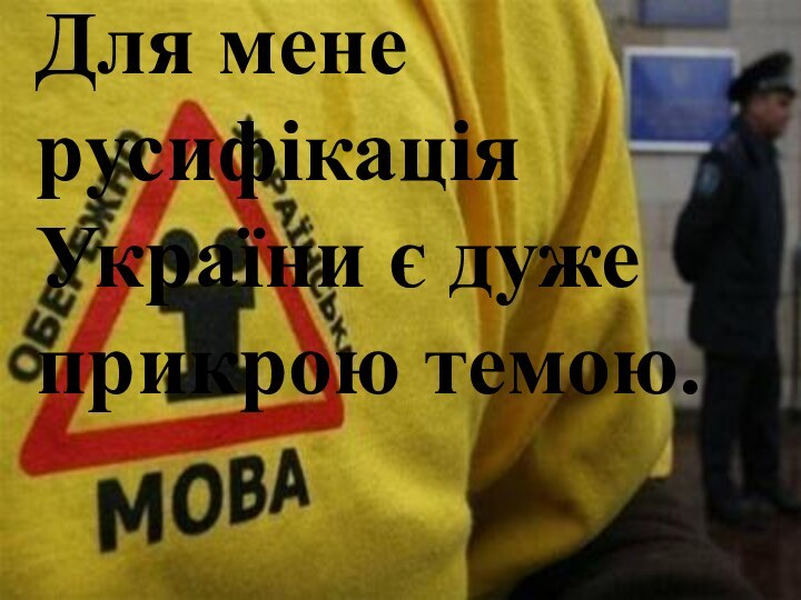 Слайд 3 Для мене русифікація України є дуже прикрою темою.