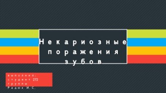 Некариозные поражения зубовНекариозные поражения зубов (или деструкция твёрдых тканей зубов некарио́зного происхождения) — суммирующий термин, который объединяет большую группу болезней (и повреждений) твёрдых тканей зубов (эмали, дентина, цемента), имеющих различные клинические проявления, возникновение и развитие которых, однако, непосредственно не связано с микробным фактором, в отличие от кариозного поражения Классификация01