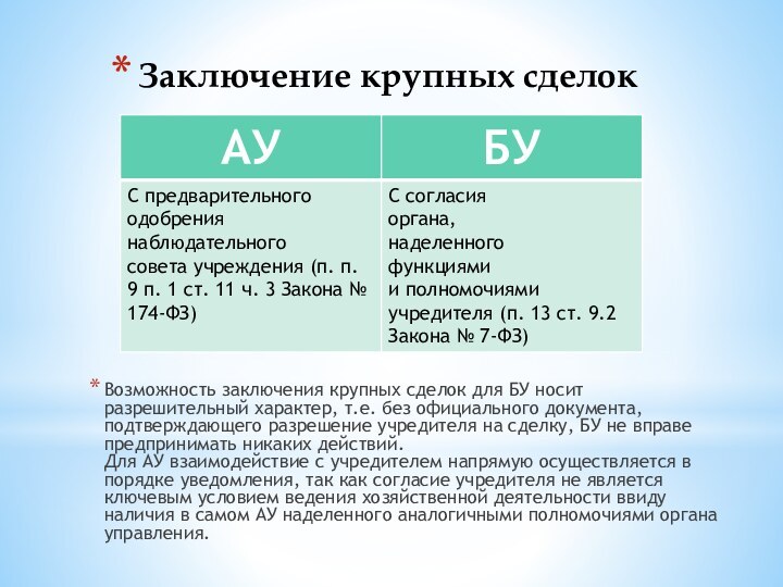 Возможность заключения крупных сделок для БУ