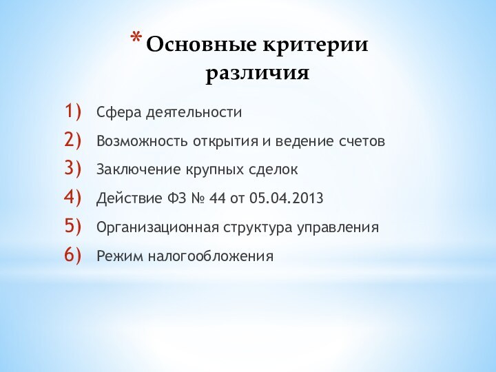 Основные критерии различия