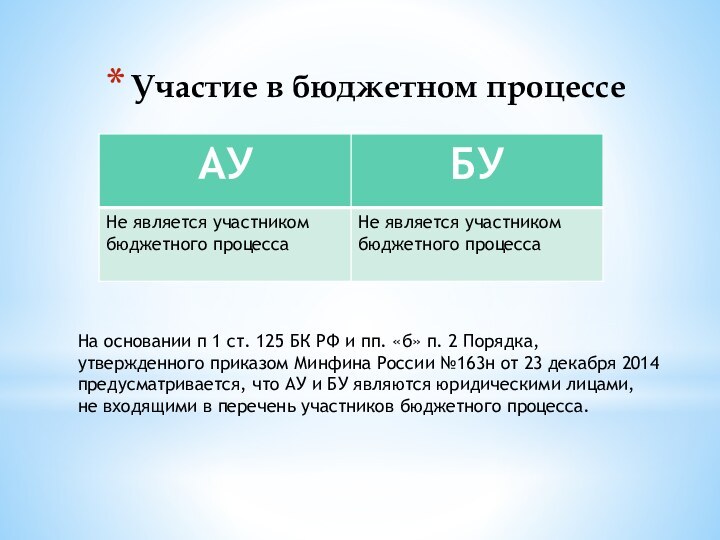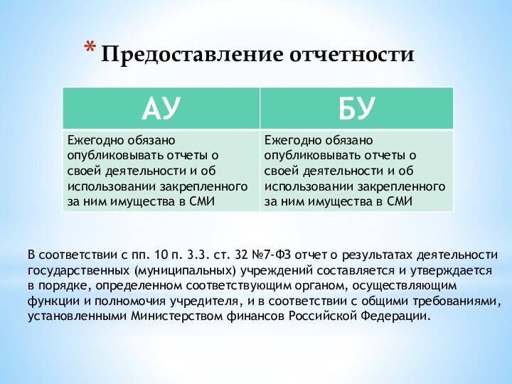 соответствующего БУ или АУ.