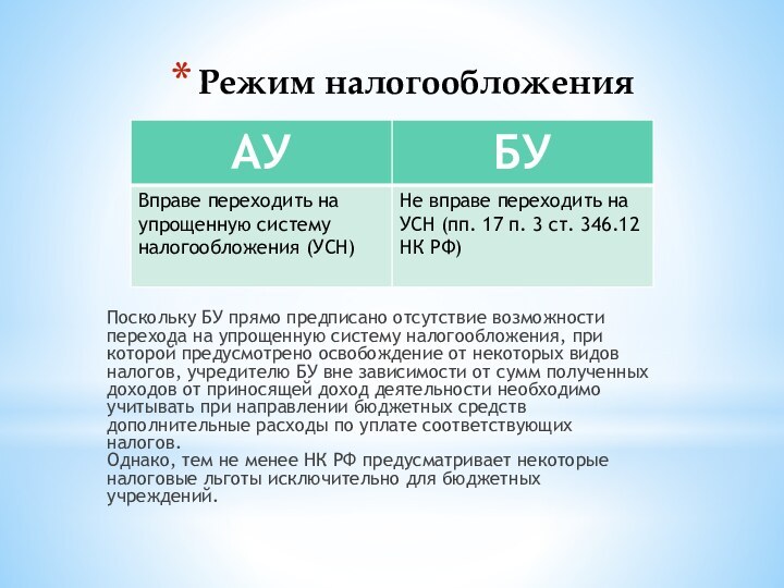 Однако, тем не менее НК РФ предусматривает некоторые налоговые льготы исключительно для бюджетных учреждений.